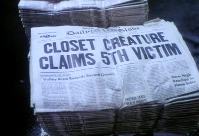 In one of many dull office-based jobs from my past, I would often listen to playlists of weird, quirky things to help me get through the day. On one occasion, I happened to be half-watching a playlist of B-Movie trailers (oh yes, check me out) when along came Monster In The Closet. Playing something between a 50s drive-in monster flick and a Zucker brothers parody, I knew I had to see this film.